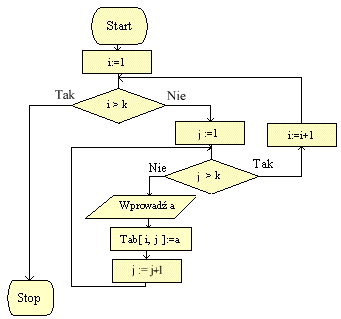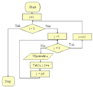 Opracuj algorytm wypełniający tablicę kwadratową k x k.
